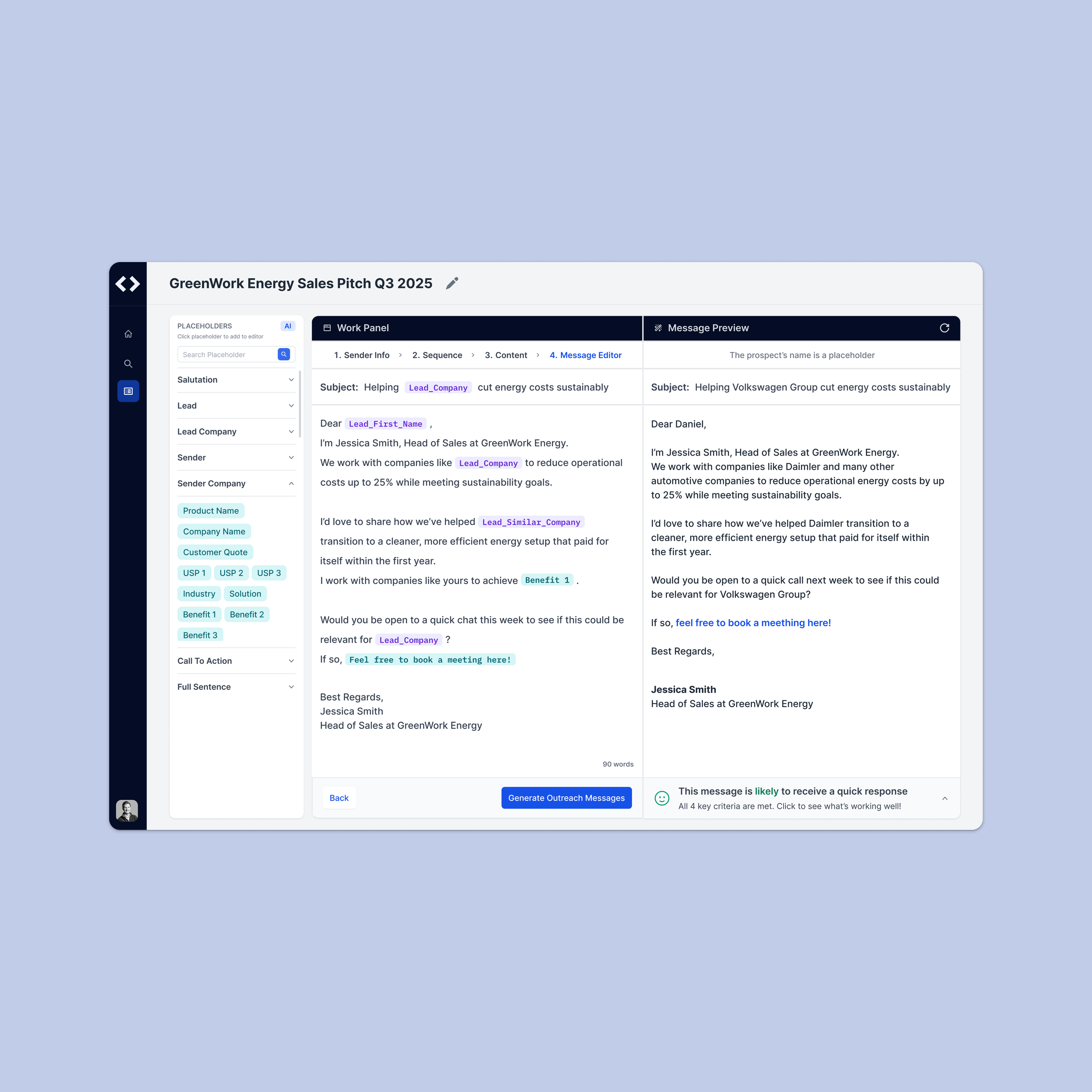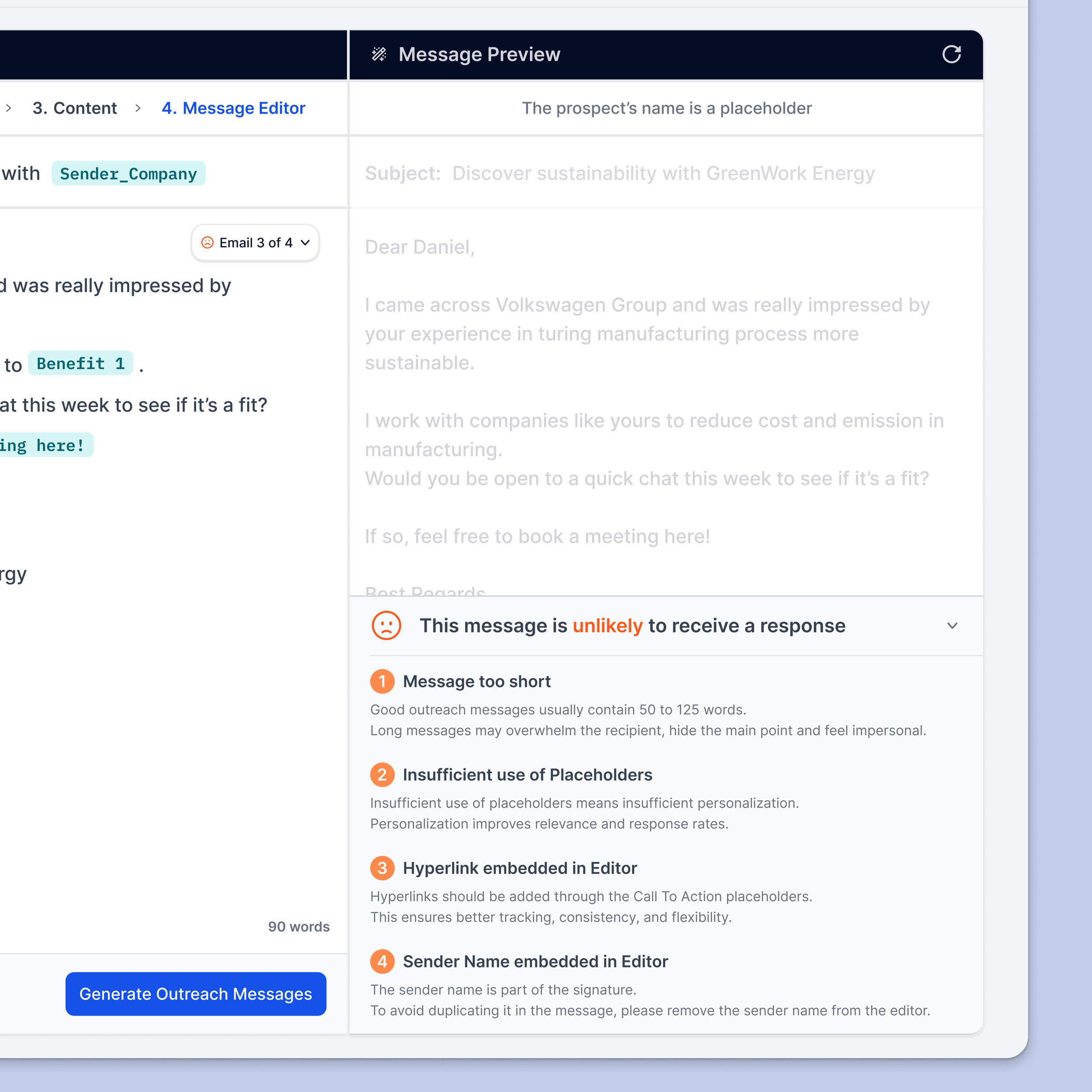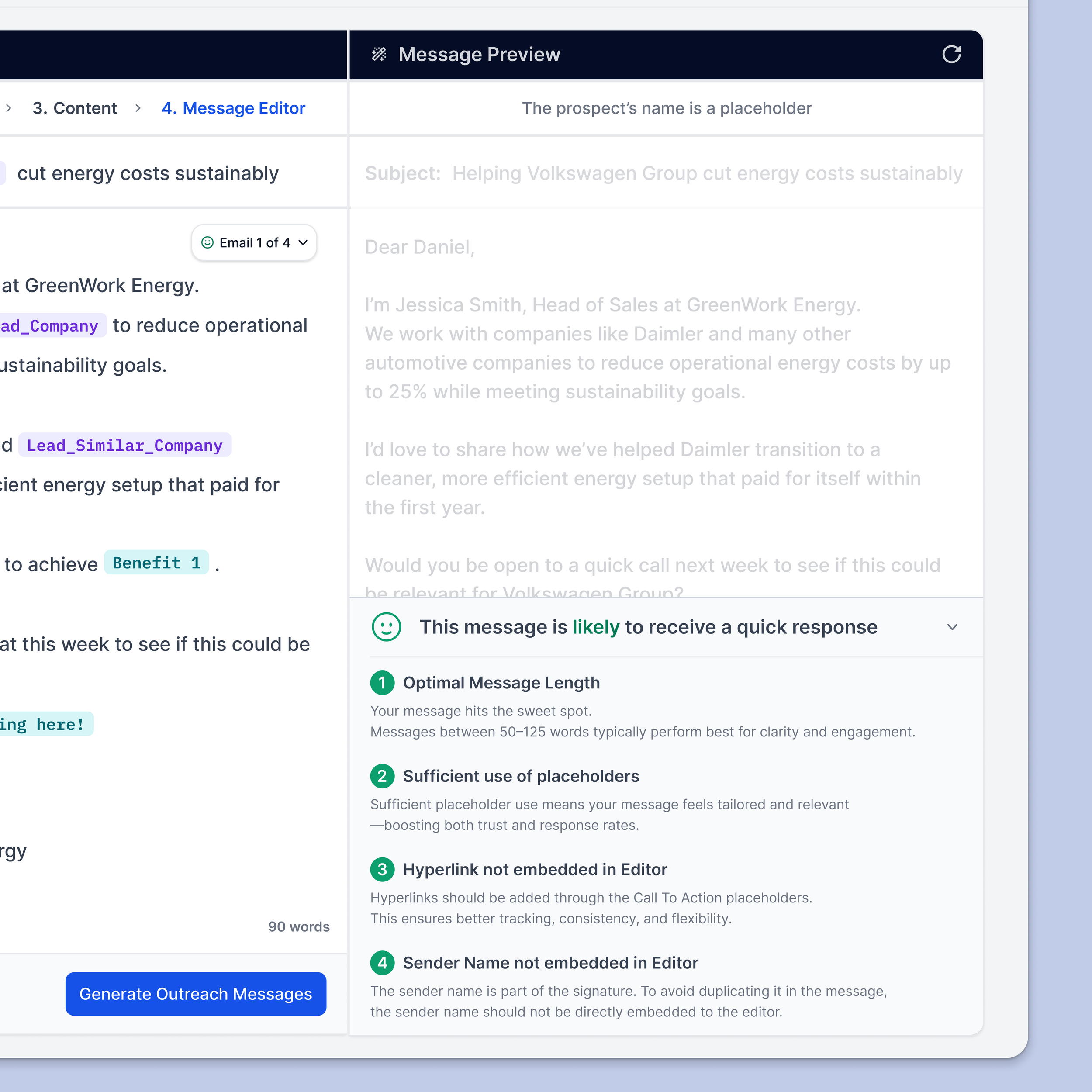 Outreach Message Editor